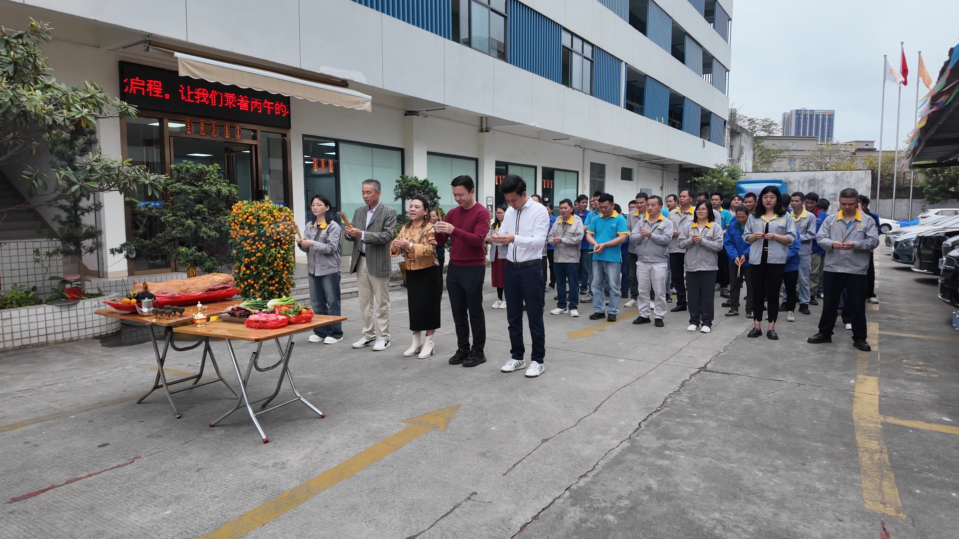 On the first working day of the new year, management and employees gathered at the factory for a ceremonial blessing ritual, a long-standing tradition in Chinese manufacturing culture. The ceremony included offering incense and prayers, expressing gratitude for the past year and seeking blessings for smooth production, workplace safety, and strong business performance in the year ahead.